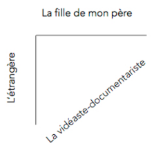 Je suis la fille de mon père et je suis une étrangère(9) dans son pays. Ce conflit dehors-dedans va tendre à se résoudre par la construction d’une identité autre : celle de la vidéaste-documentariste. Par la réalisation d’un film vient se travailler un rapport d’altérité en soi, en tant que l’on peut être soi-même comme un autre(10). Par la fabrique du récit et la construction d’une identité singulière, l’altérité en soi vécue comme un clivage devient l’espace potentiel(11) de la réalisation de soi.